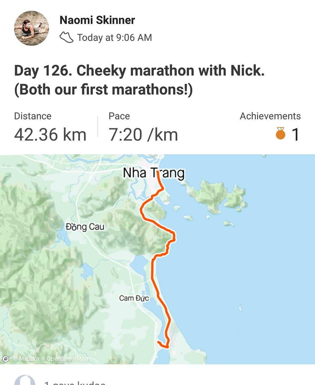 We waved goodbye to Mikey and set off along the Nha Trang seafront. We had decided that if we were going to run 40km, we might as well attempt a marathon at 42.2km. Neither of us had run this distance before. The weather was overcast and there was a cooling sea breeze. My legs felt strong after a rest day and the first 10kms flew past in a flurry of catch up conversations and running stories.