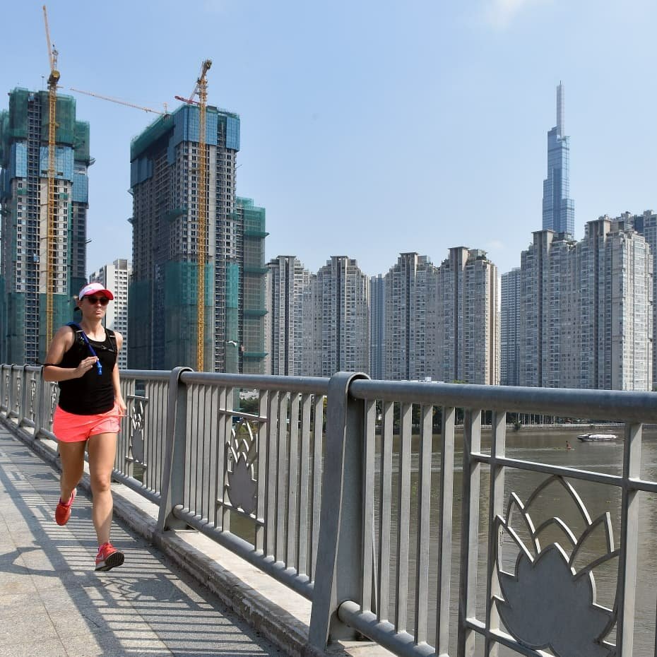 I love running through bustling streets, over jam-packed bridges and past the constrasting buildings of this city. I have discovered countless tiny hems (streets) with welcoming cafes and have highfived numerous security guards. I especially love running by the Saigon river in early evening when the street food stalls really come alive and hundreds of kites are being flown in the sky.