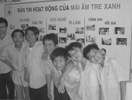 • Mái Ấm Tre Xanh – ngôi nhà dành cho những trẻ trai có HCKK tại trung tâm thành phố Hồ Chí Minh. Chúng tôi mang đến cho trẻ em một nơi ở an toàn, cơ hội học tập và thay đổi cuộc sống. Mái ấm có những hoạt động giúp đỡ trẻ gồm hỗ trợ cho các em có nơi ăn, chỗ ở an toàn, chăm sóc sức khoẻ, học chữ, học nghề, tư vấn, vui chơi giải trí, tập huấn kỹ năng sống, và một môi trường sống ấm áp, an toàn và đầy tình yêu thương cho trẻ trai từ 8 đến 16 tuổi.